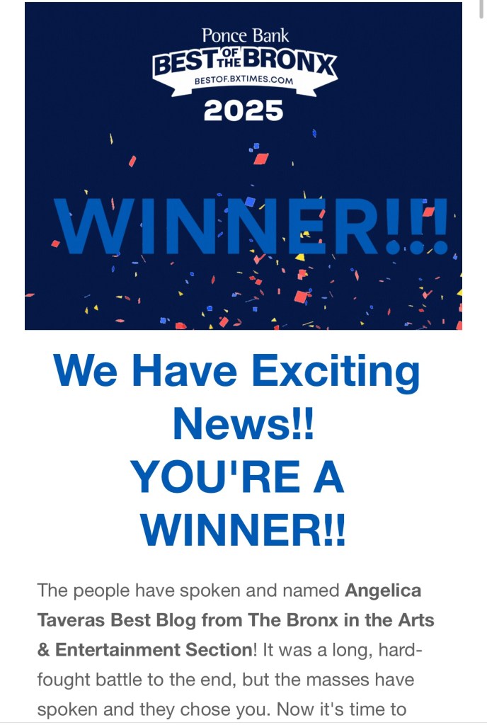2. Congrats on writing, reading, on encouraging us to read. But mostly on winning Best of the Bronx !!!!!!